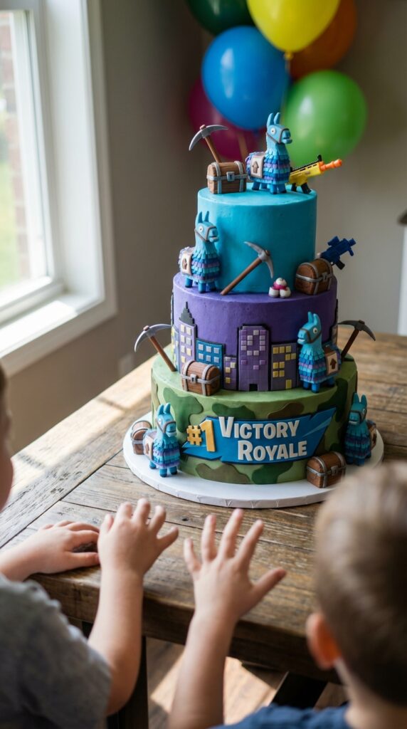 When it comes to the centerpiece of any Fortnite birthday party, the cake needs to make a serious statement. Consider tiered cake designs featuring iconic Fortnite elements like llamas, battle buses, or the Victory Royale logo. Each layer can represent a different game theme, creating a visually stunning showpiece. Popular designs also incorporate treasure chest cake elements alongside llamas for a truly immersive Fortnite experience. You’ll also want custom cake toppers shaped like favorite characters or weapons to personalize the design. Local bakeries often accommodate these requests, or you can order edible image prints online. Either way, your cake will instantly become the most talked-about moment of the entire celebration.