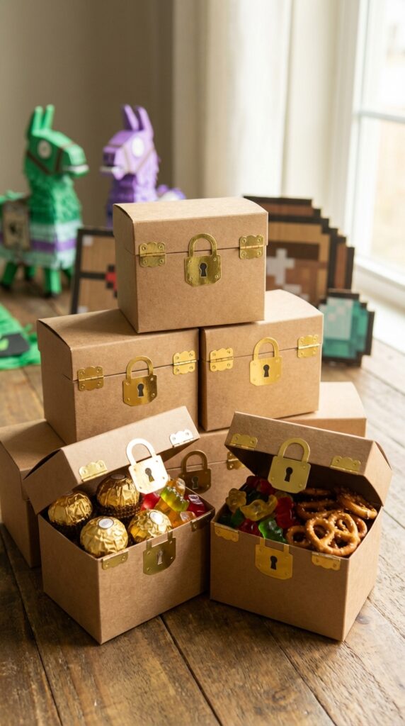 Treasure chest snack boxes are one of my favorite Fortnite party touches because they pull double duty — guests get a fun keepsake *and* a snack.
