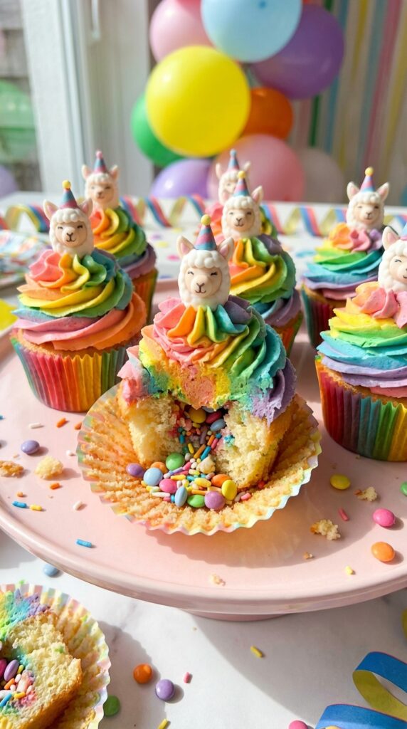 For your llama piñata cupcake decorations, use rainbow-colored buttercream ruffles piped in layers to mimic the llama’s iconic fur. Top each one with a fondant llama head — easy to find pre-made online.