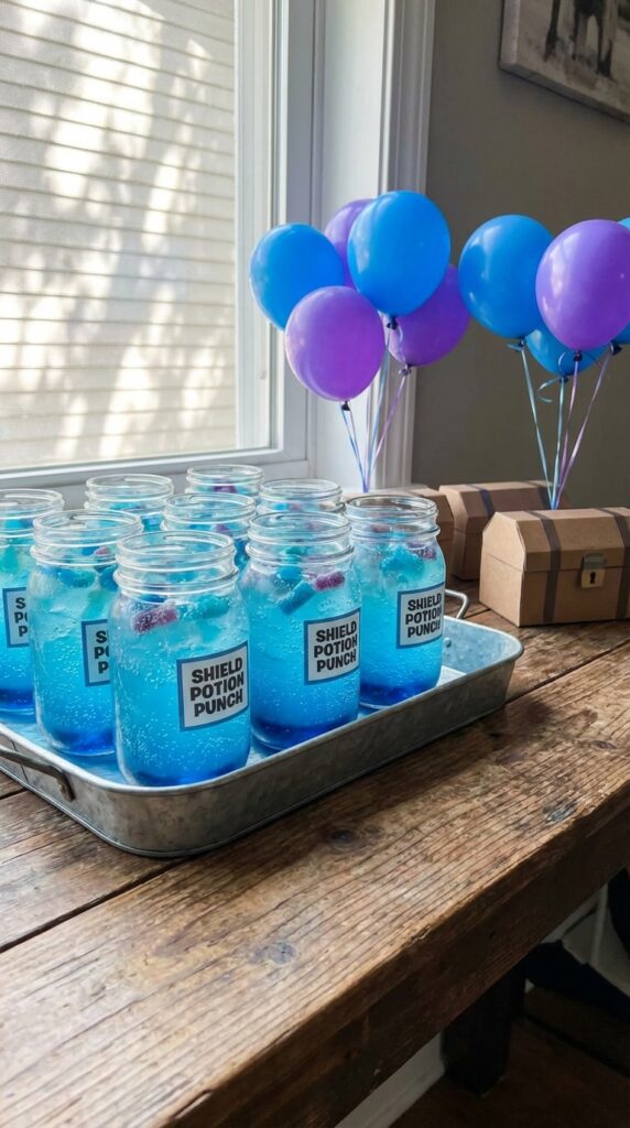 This iconic blue drink is surprisingly easy to recreate. Mix blue raspberry lemonade with coconut water and a splash of blue sports drink for that perfect shield-blue glow. You can investigate potion color variations by adding different food coloring shades — lighter blues feel more authentic.