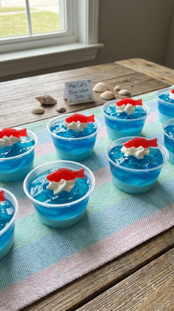 Serve Colorful “MerCat Waves” Blue Jello Cups