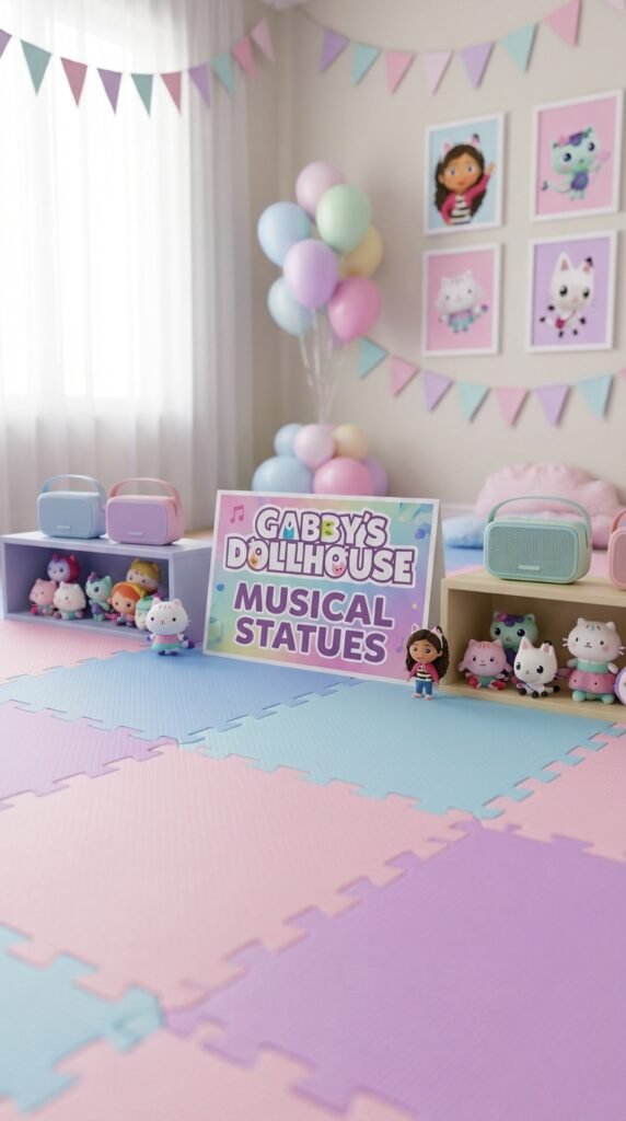 Add themed photo props like oversized cat ears and Pandy Paws cutouts nearby. Position a “Welcome to the Dollhouse” sign at toddler eye level. Trust me, parents will love capturing images here while keeping excited two-year-olds entertained.