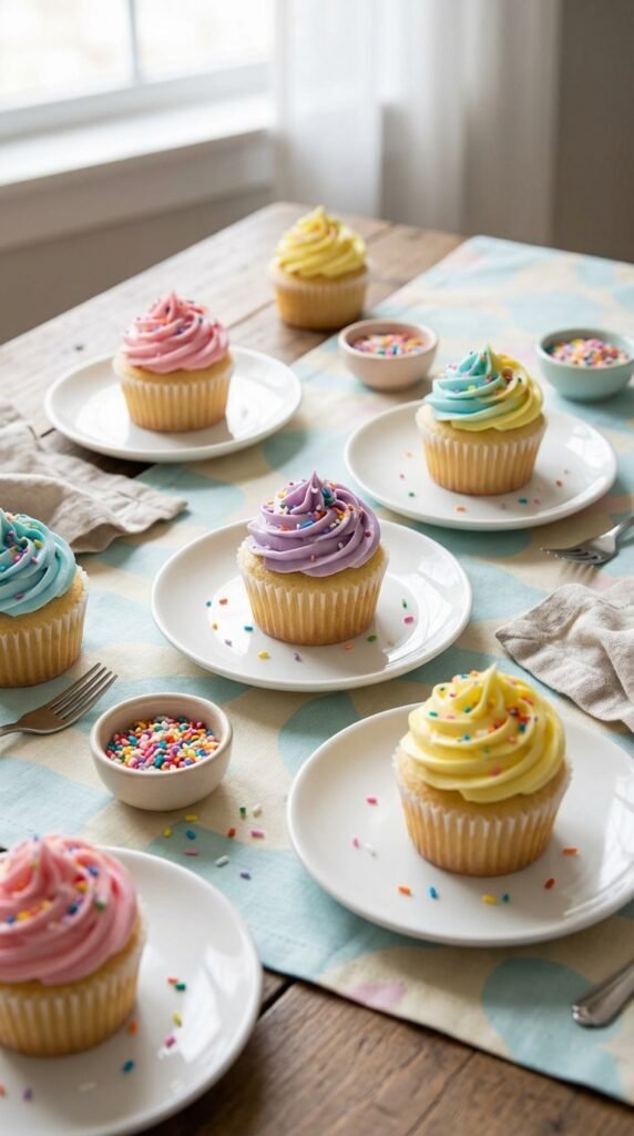 For toddler-friendly decorating, skip complex piping techniques for cupcakes. Instead, let kids add their own sprinkles using small bowls and spoons. They’ll feel like real bakers without the mess of frosting bags, and you’ll avoid meltdowns over imperfect swirls.