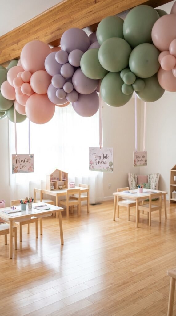 Decorate With Pastel Balloons and Dollhouse Room Signs