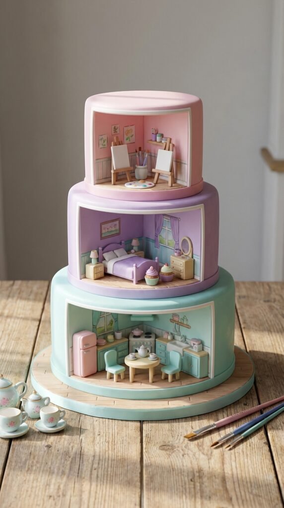 Multi-Level Dollhouse Replica Cake With Colorful Rooms