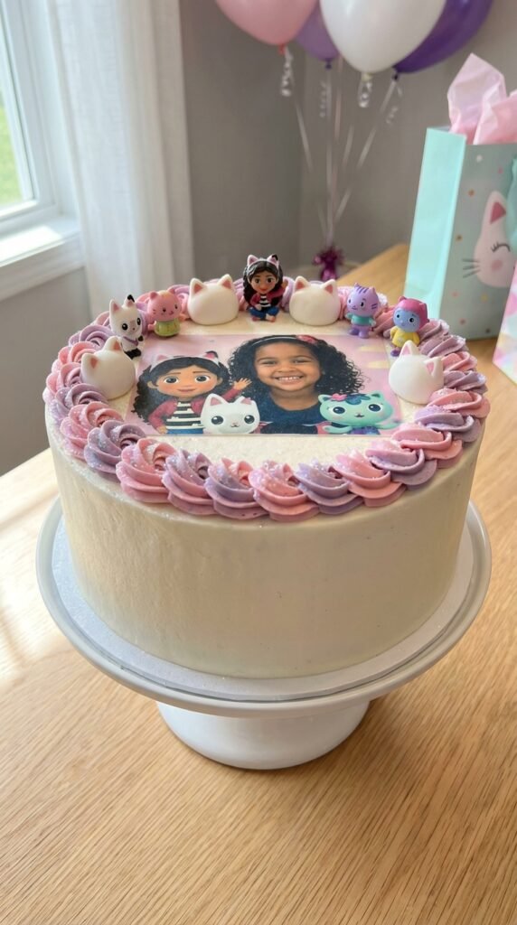 Cat ears certainly pack a punch, but image cakes take personalization to another level entirely. You’ll print your child’s photograph directly onto edible frosting sheets, then place it alongside their favorite Gabby’s Dollhouse characters. This creates an unforgettable centerpiece that genuinely celebrates your birthday kid.