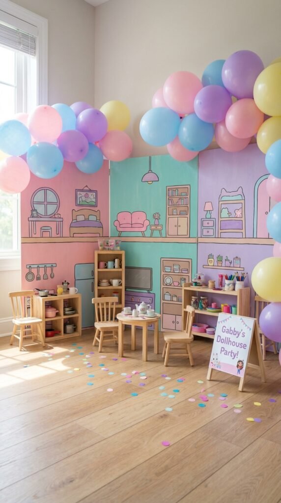 For even more magical space transformation, consider incorporating other Gabby’s Dollhouse decoration elements throughout your party area to complete the immersive experience.