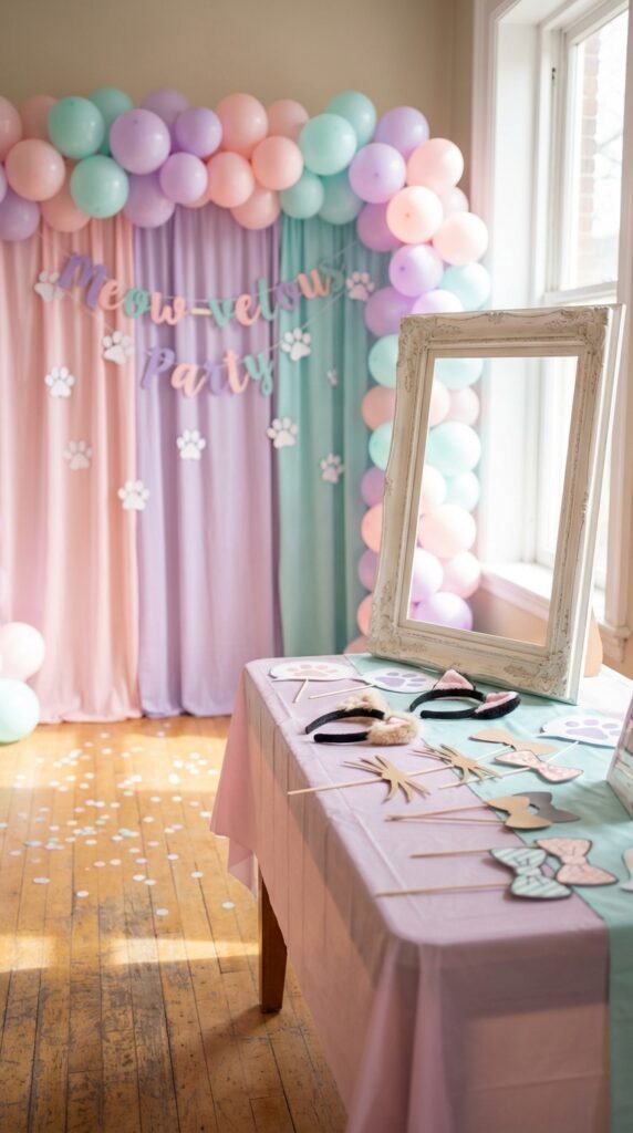 I’ve found that festive frame backdrops featuring the show’s signature pastel colors work beautifully—think pink, purple, and teal combinations. Add some paw print cutouts and a “Meow-velous Party” sign for extra flair. Trust me, parents will appreciate having these cute photos to commemorate the celebration long after the party ends.
