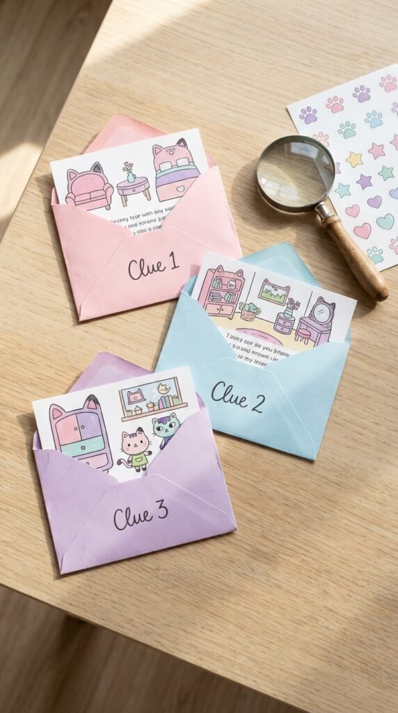 When you want to build anticipation before the party even starts, scavenger hunt invitations metamorphose a simple RSVP into an odyssey worthy of Gabby herself. Create personalized scavenger clues that lead guests through different “rooms” of the Dollhouse, with each clue revealing one party detail—first the date, then the time, finally the address.