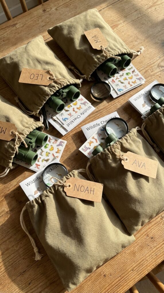 Once your guests have their adopted animals in hand, you’ll want to send them home with something just as memorable — and that’s where safari party bags that double as exploration kits really shine.