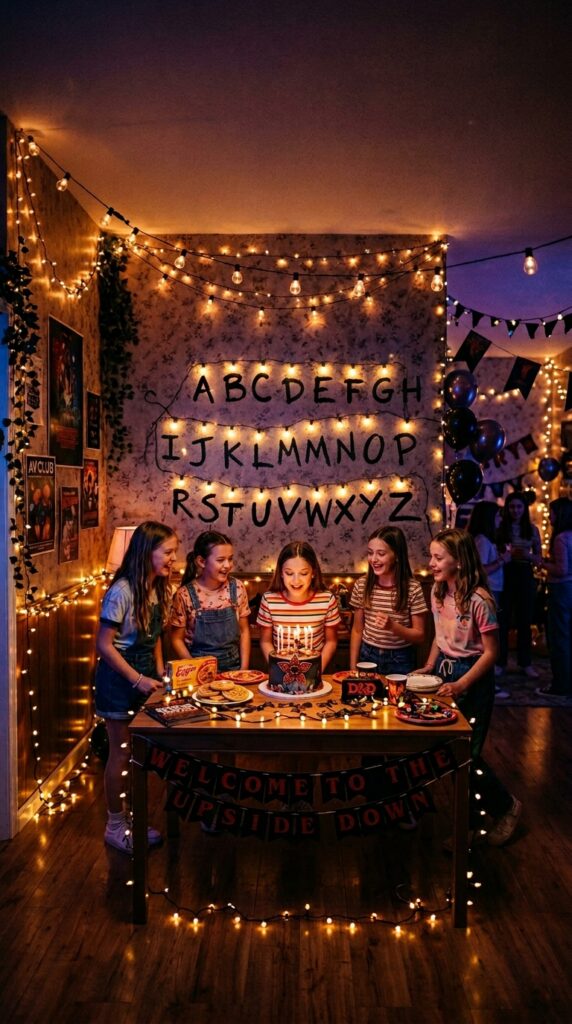 A Stranger Things party suits tweens and teens best! You’ll capture that tween nostalgia perfectly with its retro vibes. It’s ideal for ages 10–16, though you can adapt it for any age group who loves the show.