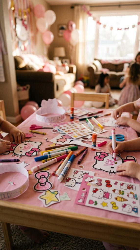 Simple structure means more smiles, less chaos, and a party everyone — kids and parents alike — actually enjoys. Alongside games, having a selection of Hello Kitty inspired activities ready to go keeps little guests busy and happy between rounds.