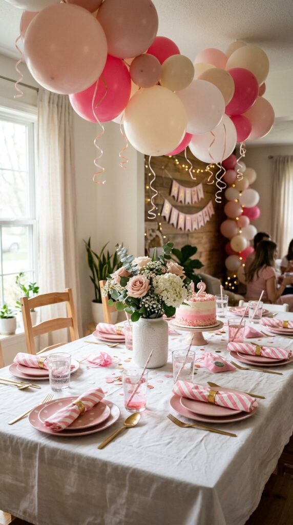 For affordable decor, grab pink and white balloons in bulk — they’re cheap and instantly change any space.