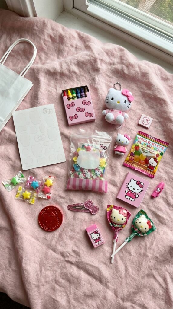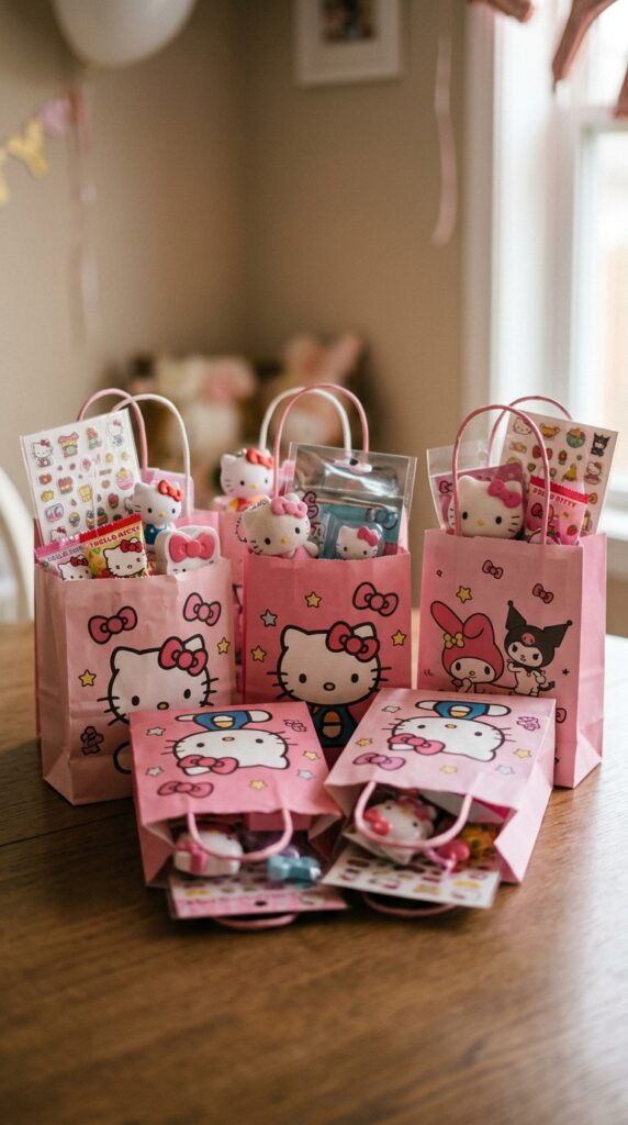 Add a small Hello Kitty figurine or hair clip to each bag — these become instant keepsakes.