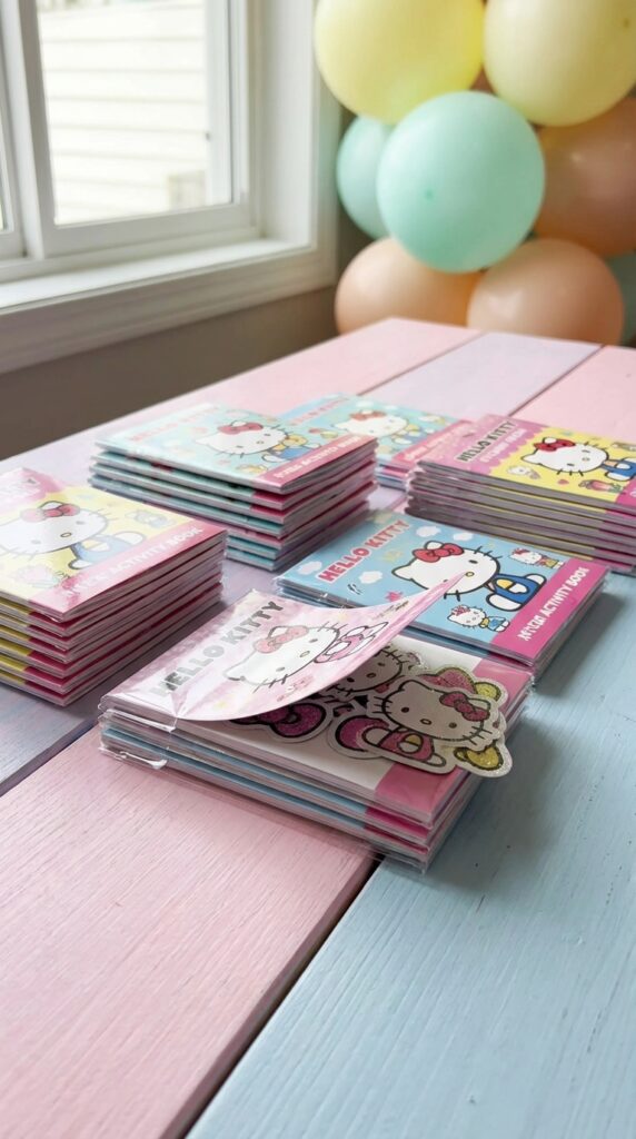 You can also add Hello Kitty coloring books for younger guests who’d rather draw than write. These sets work beautifully for back-to-school season too, making your favor feel surprisingly practical.