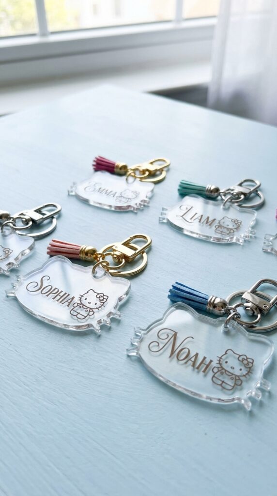 Moving beyond edible favors, personalized Hello Kitty keychains and bag charms offer something guests can hold onto long after the party’s over.