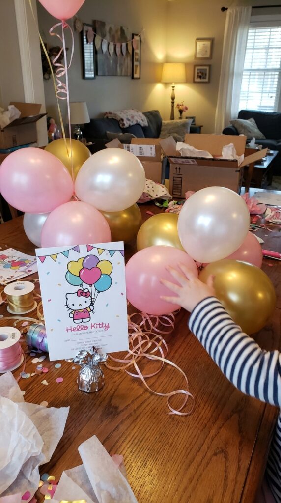 Balloons bring an instant burst of joy to any birthday party, and a Hello Kitty balloon-theme invitation captures that energy beautifully right from the start.