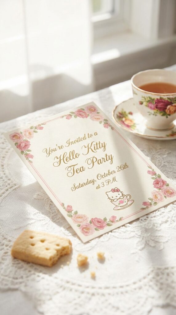 Hello Kitty Tea Party Invitation With Elegant Typography
