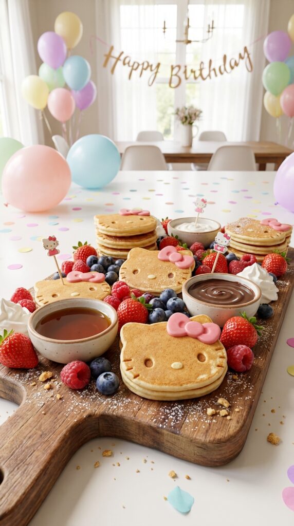 Once you’ve perfected the individual pancakes, it’s time to think bigger — and a Hello Kitty pancake charcuterie board is honestly one of the most impressive ways to serve them.