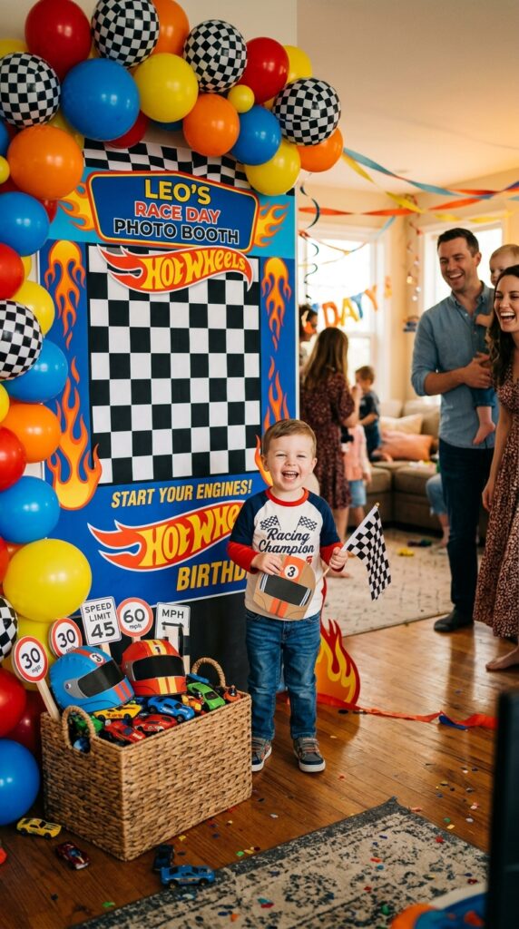 A photo booth is one of those party elements that guests genuinely get excited about, and with a Hot Wheels theme, you’ve got endless creative fuel to work with.