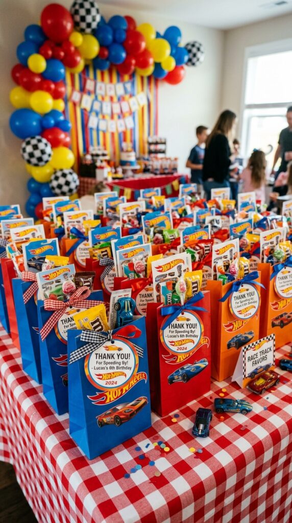 Add a personalized tag that reads “Thanks for racing with us!” and you’ve got a memorable takeaway that keeps the Hot Wheels energy going long after the party ends.