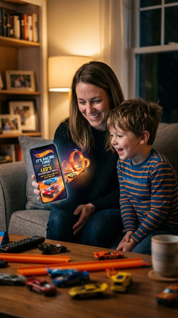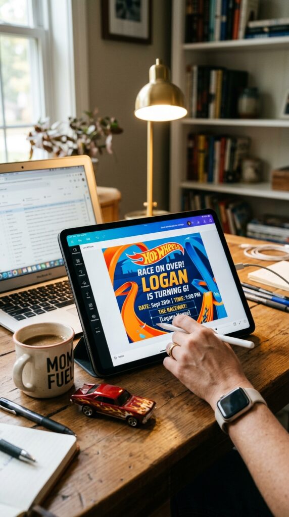 If crafting isn’t your thing, digital Hot Wheels invitations are a total breakthrough. Platforms like Canva and Evite offer ready-made Hot Wheels templates you can customize in minutes. Just swap in your child’s name, party details, and preferred colors.