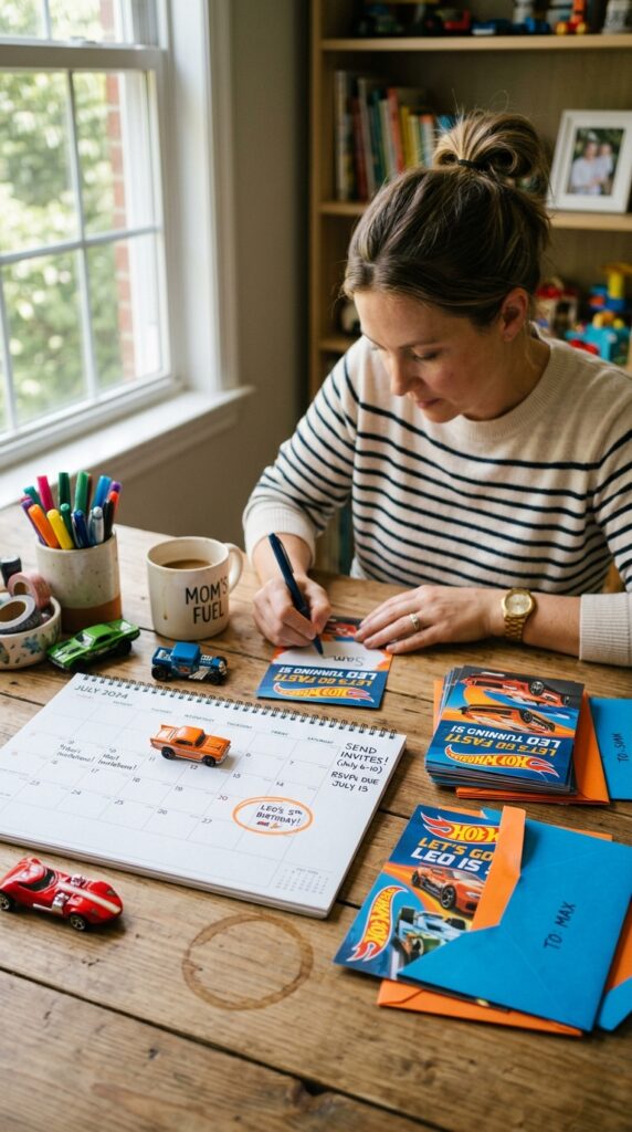 Timing your Hot Wheels invitations correctly can make or break your party’s attendance. Send invitations two to three weeks before the party date for the best guest response. This window gives families enough time to clear their schedules without forgetting about your event entirely.