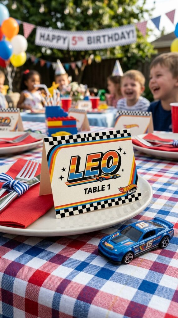 Each little racer at your party deserves a seat that feels like their own personal pit stop. Custom designs make name cards feel intentional rather than generic.