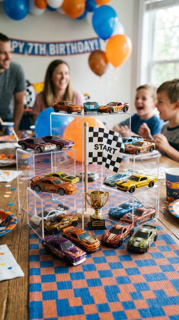 Checkered flag patterns are honestly one of the easiest ways to tie your entire Hot Wheels table together without spending much money.