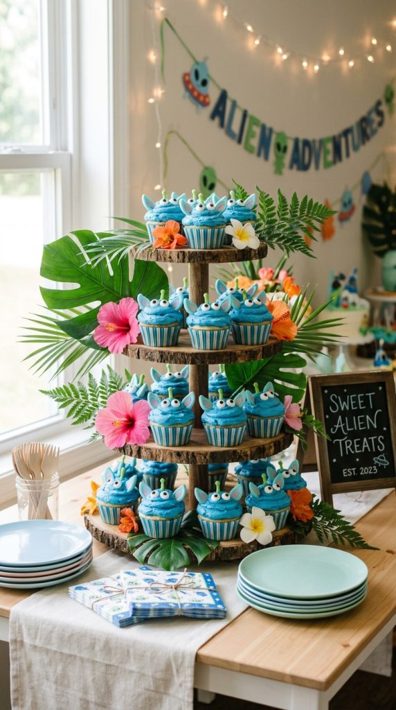 Top them with blue frosting, edible googly eyes, and tiny fondant ears for instant alien cupcakes that’ll wow every guest.