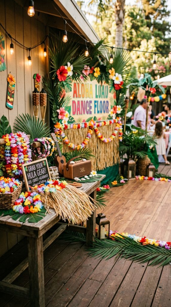 Why not turn a corner of your party space into a full-on Hawaiian dance floor?