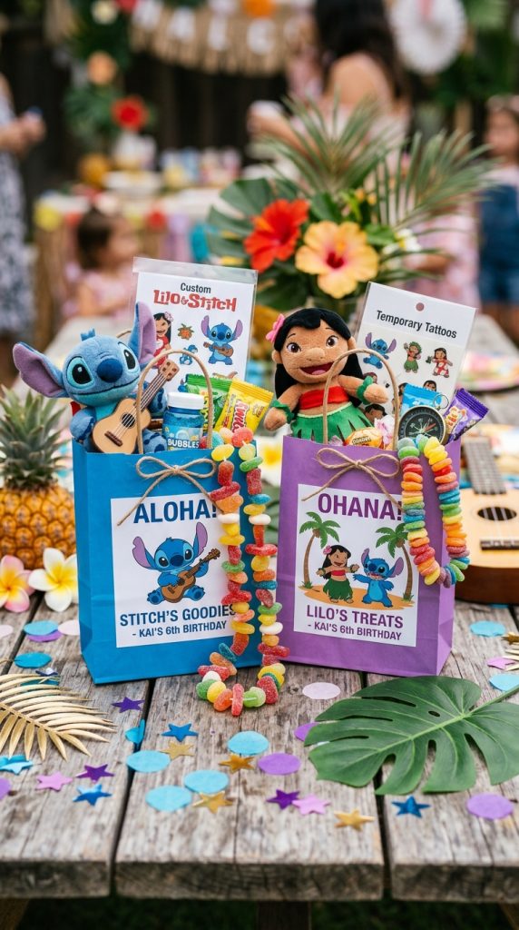 Wrap everything in a blue or purple bag with Stitch’s face on it. Trust me, these bags make the party memorable long after the last slice of cake disappears.