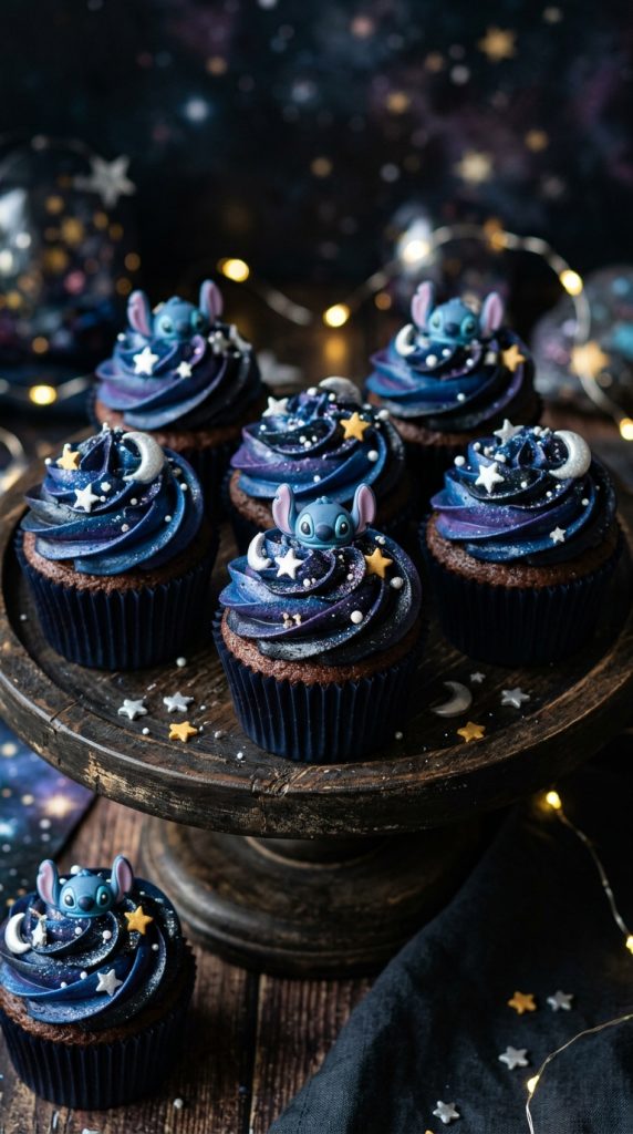 Galaxy and Space-Themed Stitch Cupcakes in Deep Blue