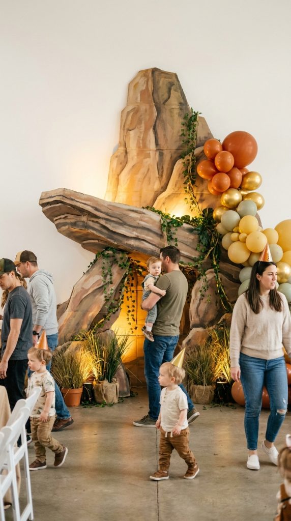 A photo booth is one of those party elements that pays for itself ten times over — guests love it, parents love the keepsakes, and you’ll have a flood of shareable memories long after the cake is gone. Set up a backdrop featuring jungle vines and golden savanna grass to instantly transport guests into Rock of Kings territory.