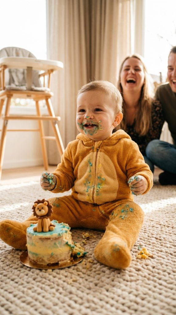 The first birthday only happens once, and you’ll want photos that actually capture the magic — not just a blurry snapshot of frosting chaos. Plan a dedicated photo session before the party starts, when your little one is still fresh, rested, and not covered in cake.