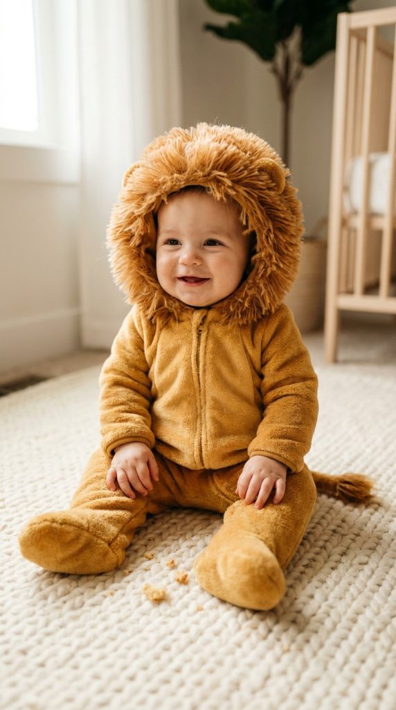 Dressing your baby as Simba might just be the easiest win of the entire party. Grab a Simba onesie featuring jungle prints, and you’ve already nailed the look. Many come with attached hoods shaped like lion ears, which honestly do half the work for you.