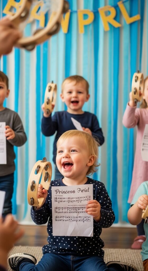 Nothing brings mermaid magic to life quite like Princess Ariel’s iconic songs echoing through your party space. You’ll want to lead a fun sing along session featuring “Part of Your World,” “Under the Sea,” and “Kiss the Girl. Create lyric sheets with colorful sea-themed borders so everyone can join in confidently.