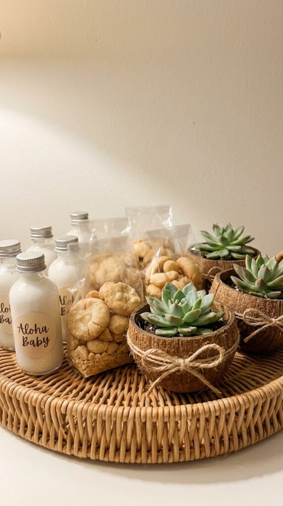 Consider pineapple-shaped soaps, macadamia nut cookies in clear bags, or bamboo keychains. The key? Choose items that feel authentic to the theme while celebrating baby’s arrival.