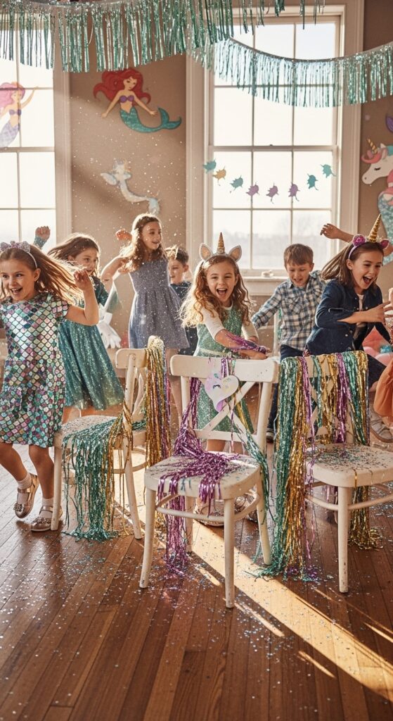 Musical games recast any mermaid and unicorn party into an enchanting quest where kids can dance, giggle, and let their imaginations run wild. Start with musical freeze – when the ocean waves (music) stop, little mermaids must freeze like statues underwater.