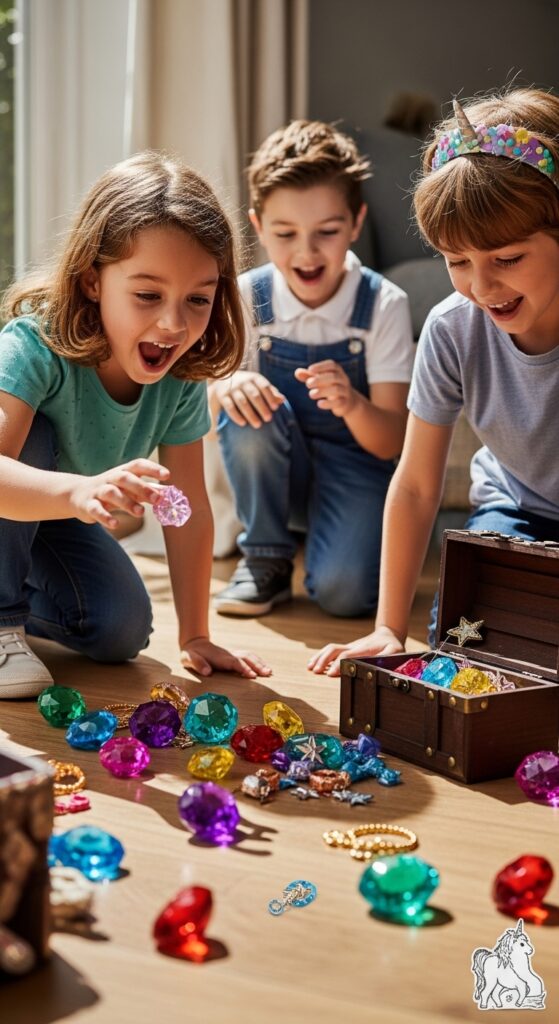 Create a hidden treasure chest filled with plastic gems, toy rings, and sparkly stickers. Mix mermaid scales with unicorn glitter for that perfect magical touch. Pro tip: use different colored gems to represent each domain. The kids absolutely love unearthing “ancient artifacts” that bridge both fantasy worlds beautifully. For younger children celebrating their first birthday, keep the treasure hunt simple with colorful items placed in easy-to-reach locations around the party area.