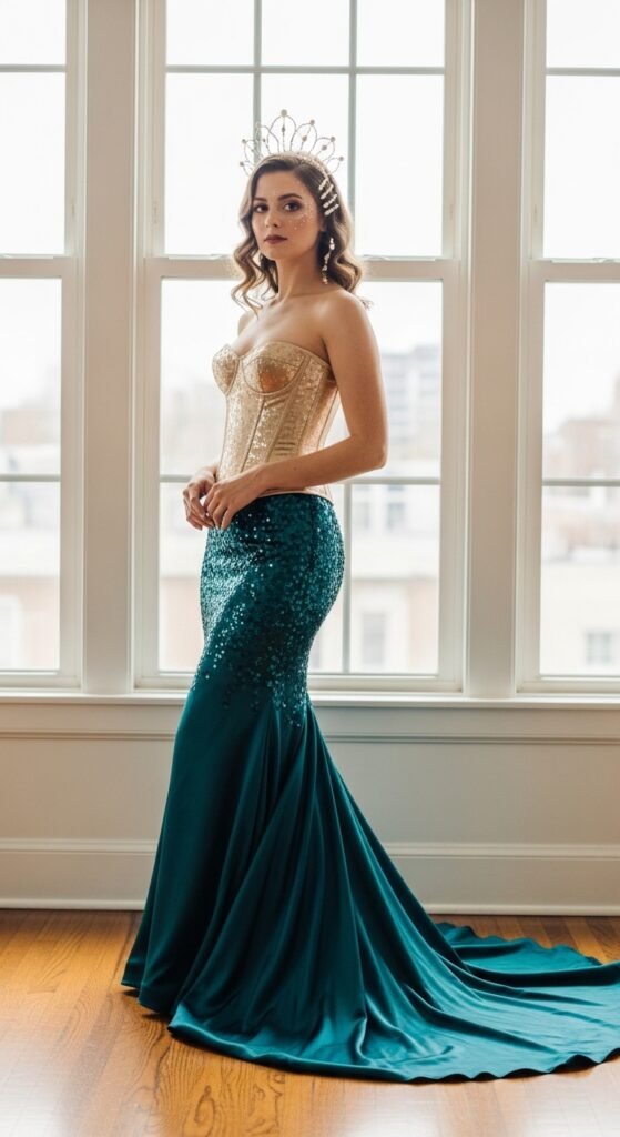 Consider investing in couture mermaid gowns featuring hand-sewn sequins and flowing silk panels that move like water. These aren’t your daughter’s Halloween costumes—they’re investment pieces you’ll treasure.