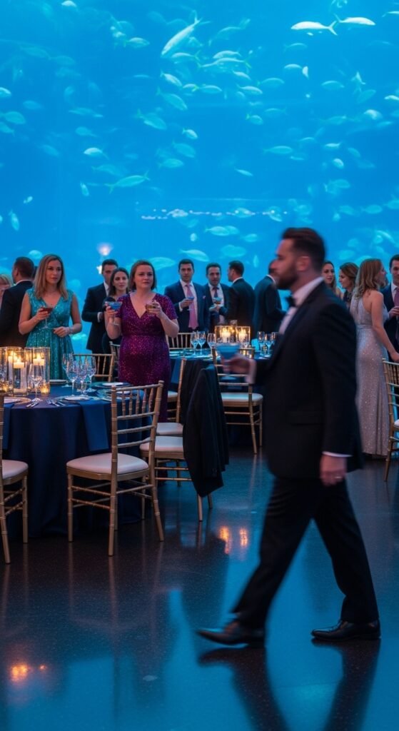 Aquariums offer exclusive venue packages with stunning backdrop views of sea life. You’ll feel genuinely immersed in an oceanic world while sipping cocktails beside massive tanks.