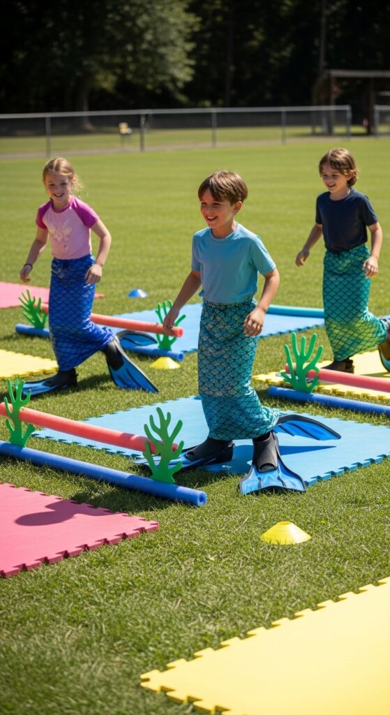 Set up mermaid flipper races where kids waddle in oversized flippers from point A to B. Trust me, the giggles are guaranteed!