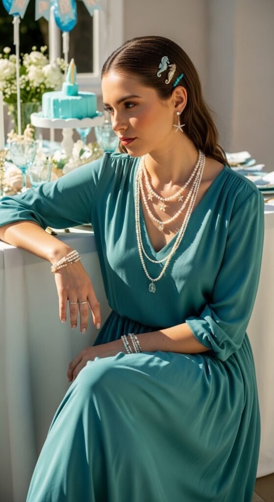 Ocean themed accessories like seahorse hair clips or wave-pattern rings complete the transformation. You’ll look effortlessly stylish while still honoring the party theme.