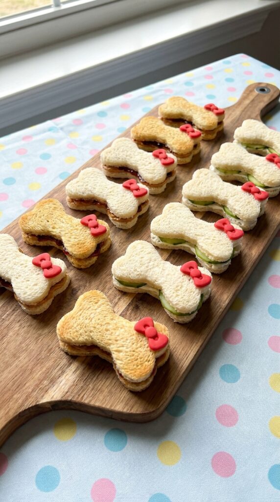 I recommend making traditional PB&J or cream cheese and cucumber sandwiches, then pressing the cutter firmly through both bread slices. If you can’t find bow cutters, circular shaped sandwiches work beautifully too—just add a red fondant bow on top.
