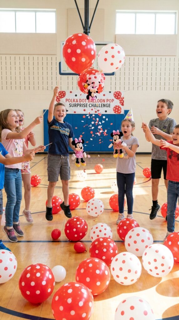 When you need to burn off some of that birthday cake energy, this relay race converts into the perfect solution. Set up stations where kids race to collect oversized bows, then return to “decorate” a large Minnie Mouse poster. You’ll love how this incorporates team building exercises naturally—kids cheer for teammates and strategize together.