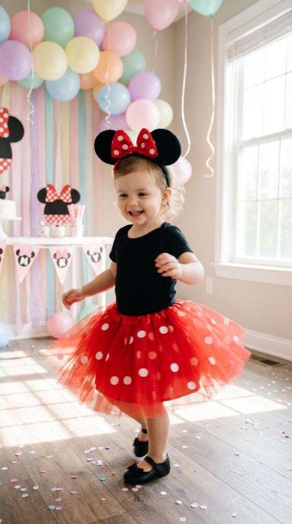 There’s something magical about watching a little one twirl in a classic Minnie Mouse outfit, and the red tutu with mouse ears combination remains the gold standard for birthday party dress-up.