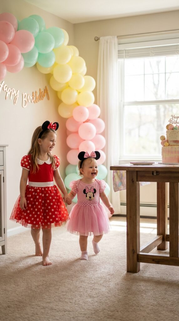 Matching sister outfits bring out the “aww” factor like nothing else at a Minnie Mouse birthday party. I’ve seen matching sibling minnie mouse outfits steal the show countless times, and they make for incredible photos you’ll treasure forever.