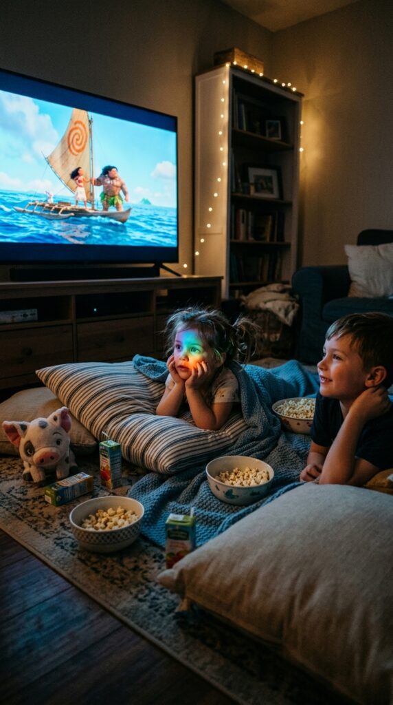 It’s surprisingly easy to incorporate Moana film elements into the party by pausing at iconic scenes and reenacting them together. Cue “How Far I’ll Go,” and watch every five-year-old suddenly become a performer. It’s the perfect low-key finale that winds the energy down while keeping the magic going strong.