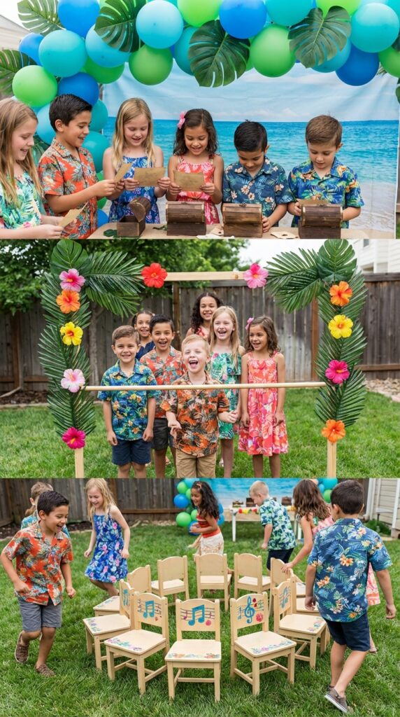 You’ll also want to run a limbo dance competition using a decorated pool noodle as your bar. Lower it gradually while playing island beats. Kids this age love the silliness of it.